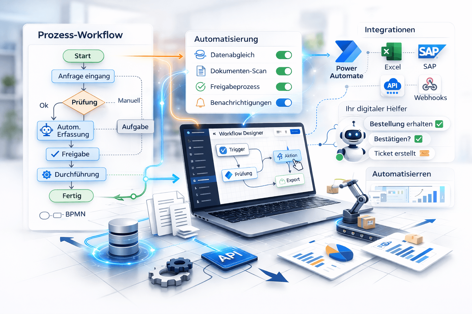 Wir bauen Websites & Web-Apps, optimieren IT-nahe Prozesse und erstellen KI-Erklärvideos – damit Ihr Team Zeit spart und Abläufe verständlich werden.